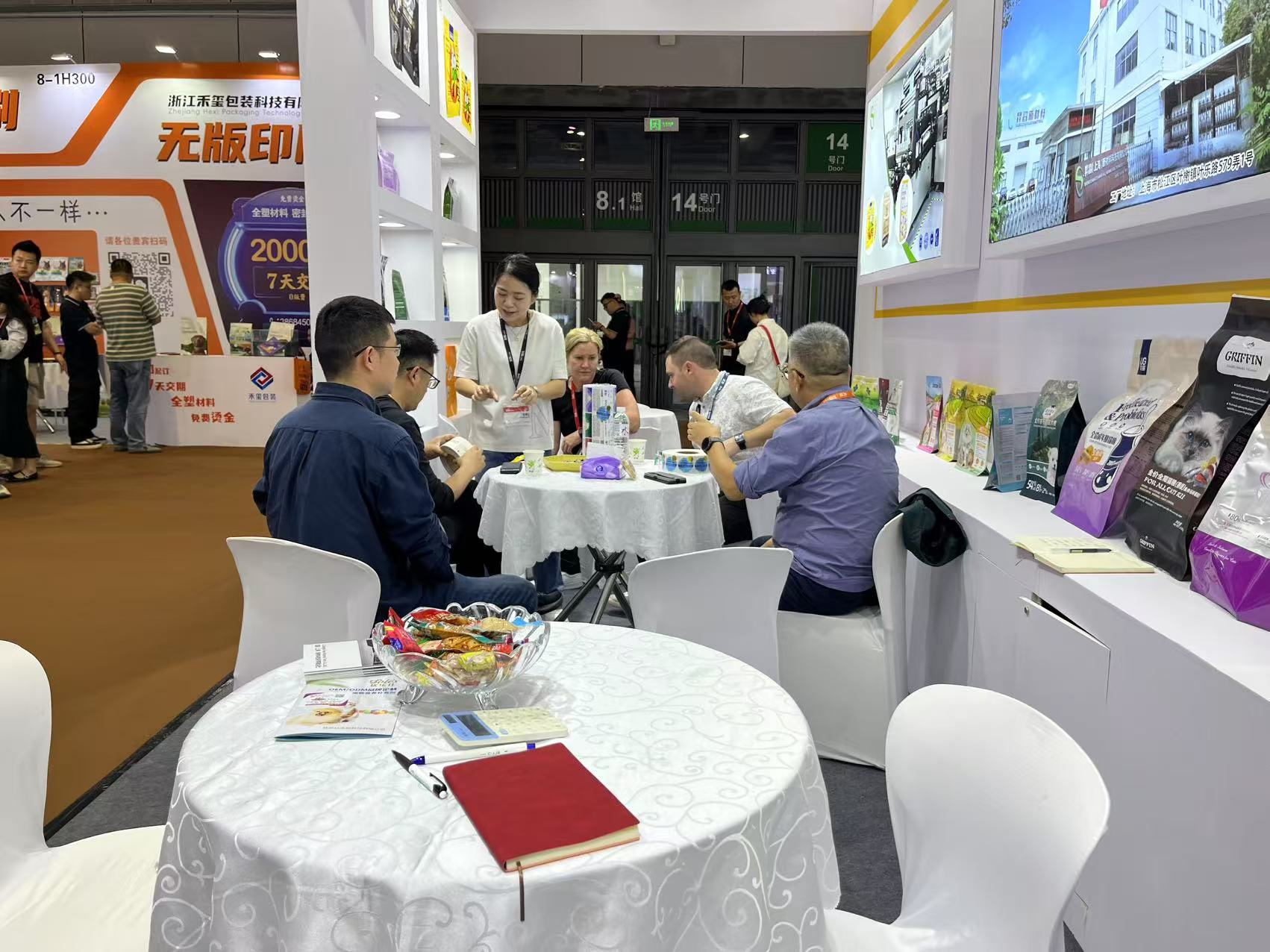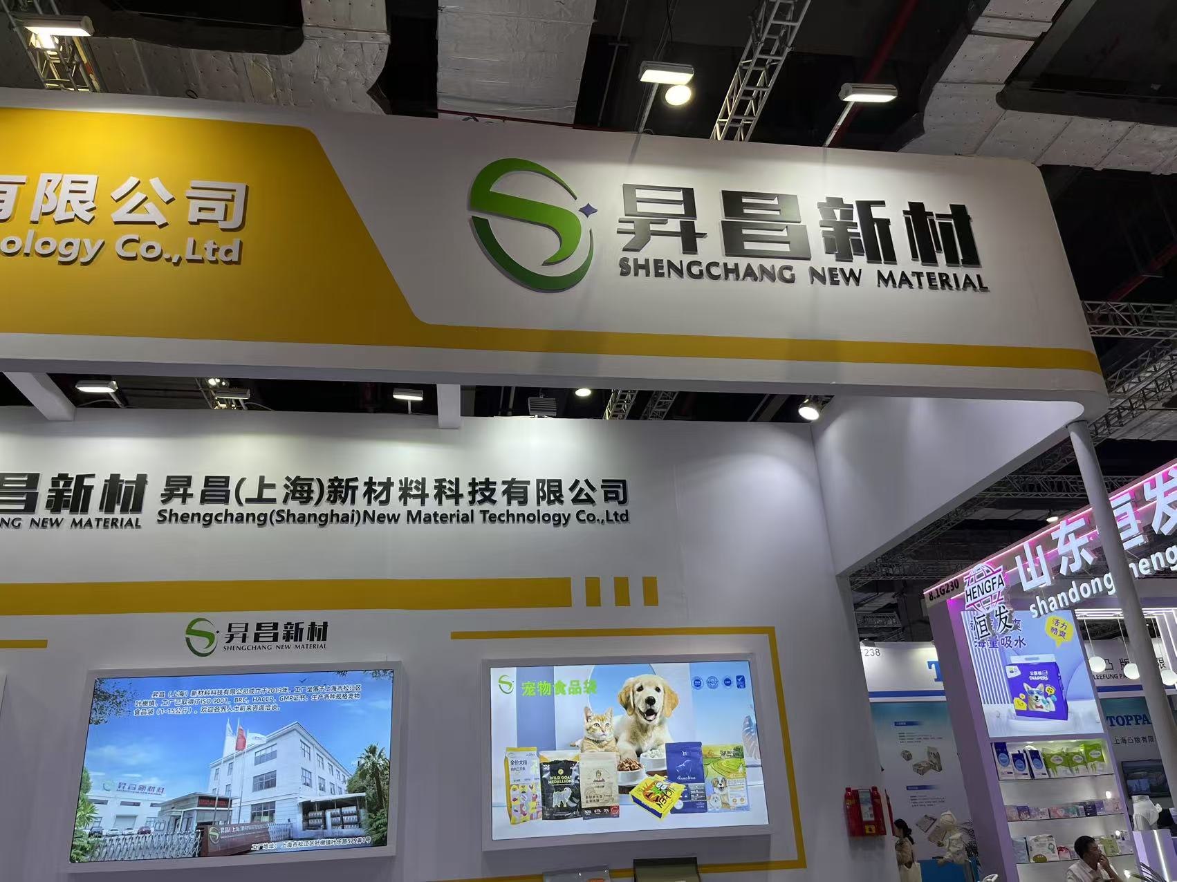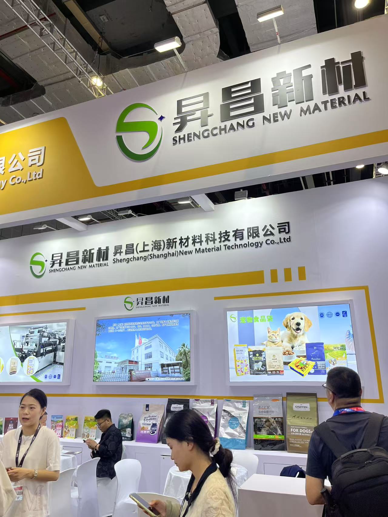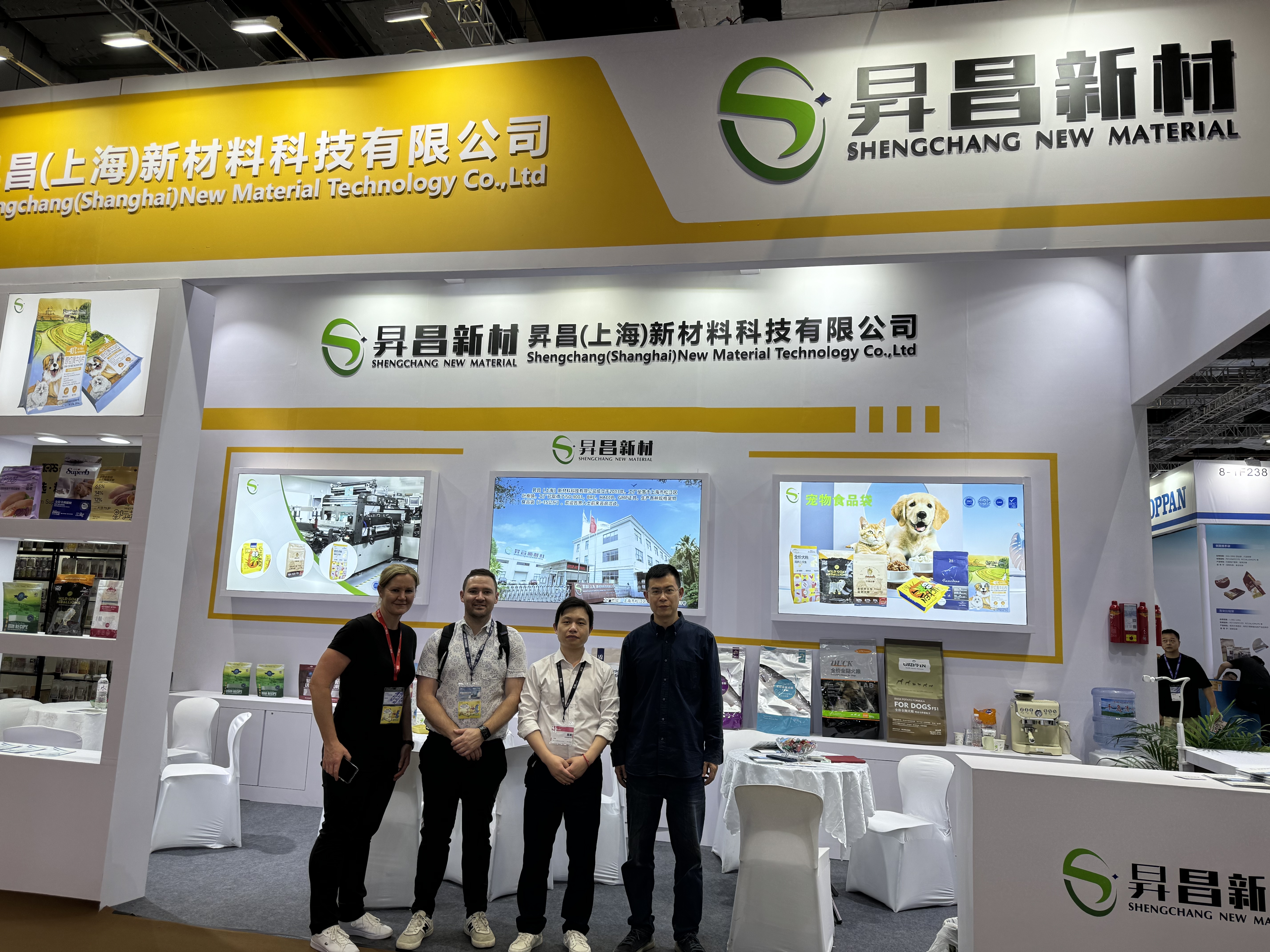 Visitors explored Shengchang’s solvent-free printed packaging, compliant with global safety standards (ISO 9001, BRC), tailored for premium pet food brands. The booth emphasized sustainability through biodegradable materials and customizable designs.